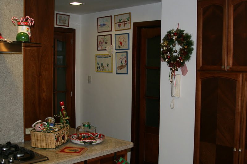 | Next to the Christmas wreath I have a wall with my granddaughters's art work. |