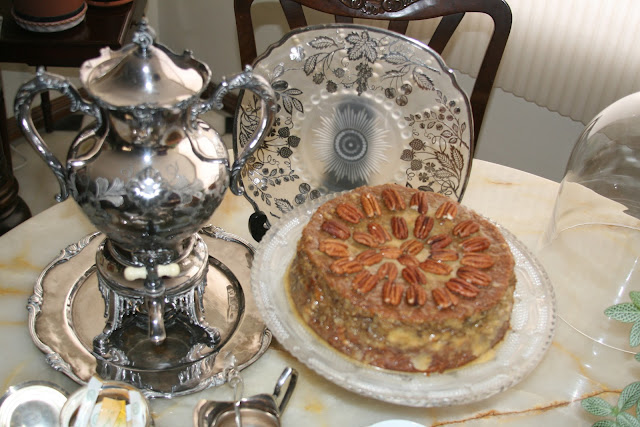 I think Dearest would love this cake - especially with the pecans on top! LOVE your tablescape - beautifully set - I was just looking at a profile picture of Bill and thinking I hadn't seen him in a while!
