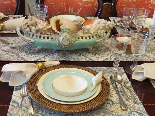 This tablescape is also my 'Summer' collaboration, taking advantage of all the seashells here.