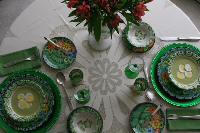 | Here I combined the shamrock dinner plate with another pattern in green soup bowl. |